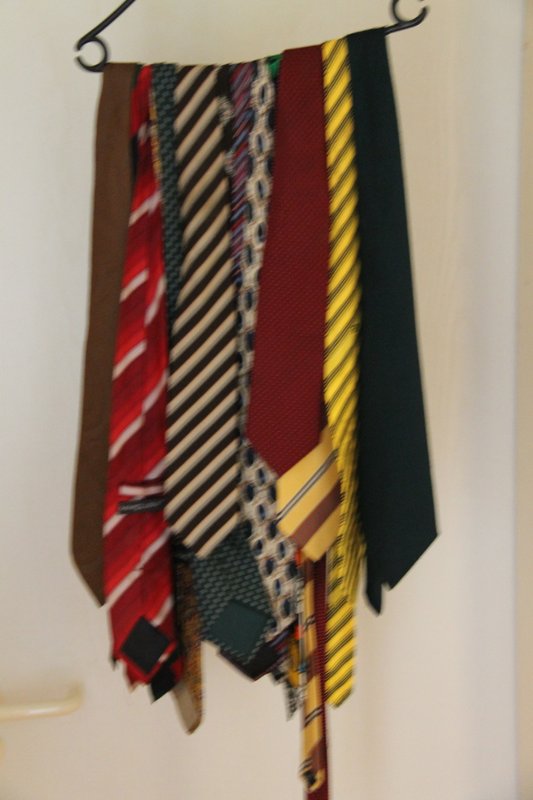 Krawatten (HKW-002) Second Hand und ausgesucht nach ihrer Hässlichkeit. Wichtig die Krawatte soll immer von Hemd und Pullunder oder Weste stark herausstechen. Auch muss die Krawatte immer einen besonders dicken Knoten haben und sehr eng am Hals sitzen.