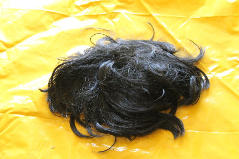 Nein das ist keine tote Katze! Das ist eine fiese Nylon-Karnevalsperücke. Damit macht man aus einem Deppen-Bengel flux eine Deppen-Sissy. Das Teil lässt nicht nur schnell schwitzen, es juckt auch fies – über das Aussehen schweigen wir … Sie können es dem Idioten ja befehlen und selbst sehen…