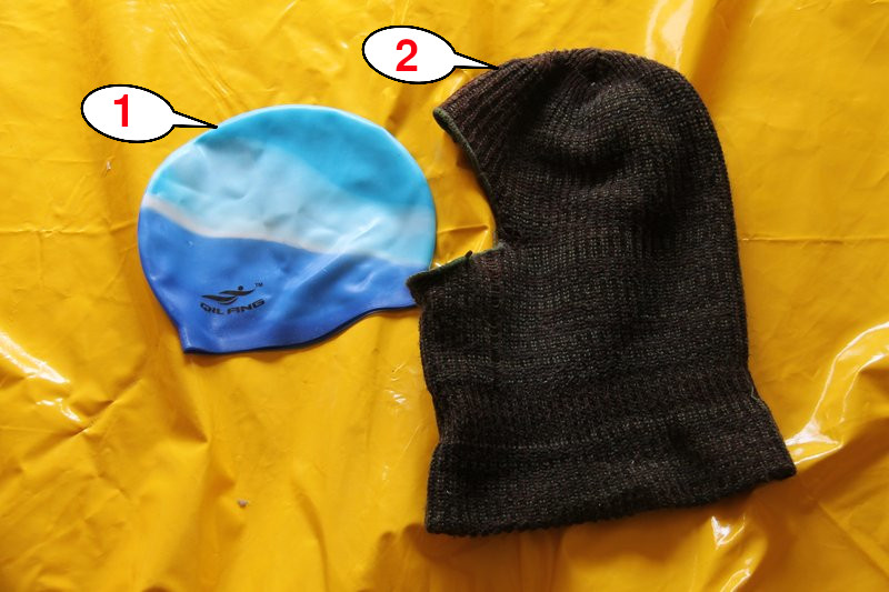 Die Badekappe kann der Depp gut unter dem Helm oder den Mützen tragen. Das erhöht den Schwitzfaktor um mindestens 300%.