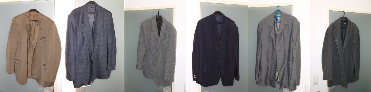 Einige Jackets sind viel zu klein mit viel zu kurzen Ärmeln, andere einfach siffig und dreckig oder sauber aber sehr knitterig.