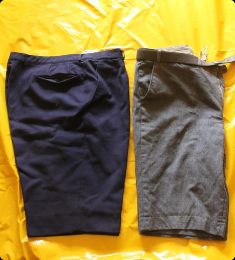 Anzughosen in blau und grau (JA-007) – natürlich kurz, denn nur Männer tragen lange Hosen.