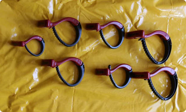 Eigentlich aus dem Elektrohandel um Kabelbäume zu fixieren. Hier sind die Rasterklemmen (FT-005 | groß – mittel – klein)im Einsatz um an Armen und Füssen eingesetzt zu werden. Der Griff hat eine Öse durch die auch breite Kabelbinder oder Schlösser passen. Die kleinste Rasterklemme passt hervorragend statt Cockring.