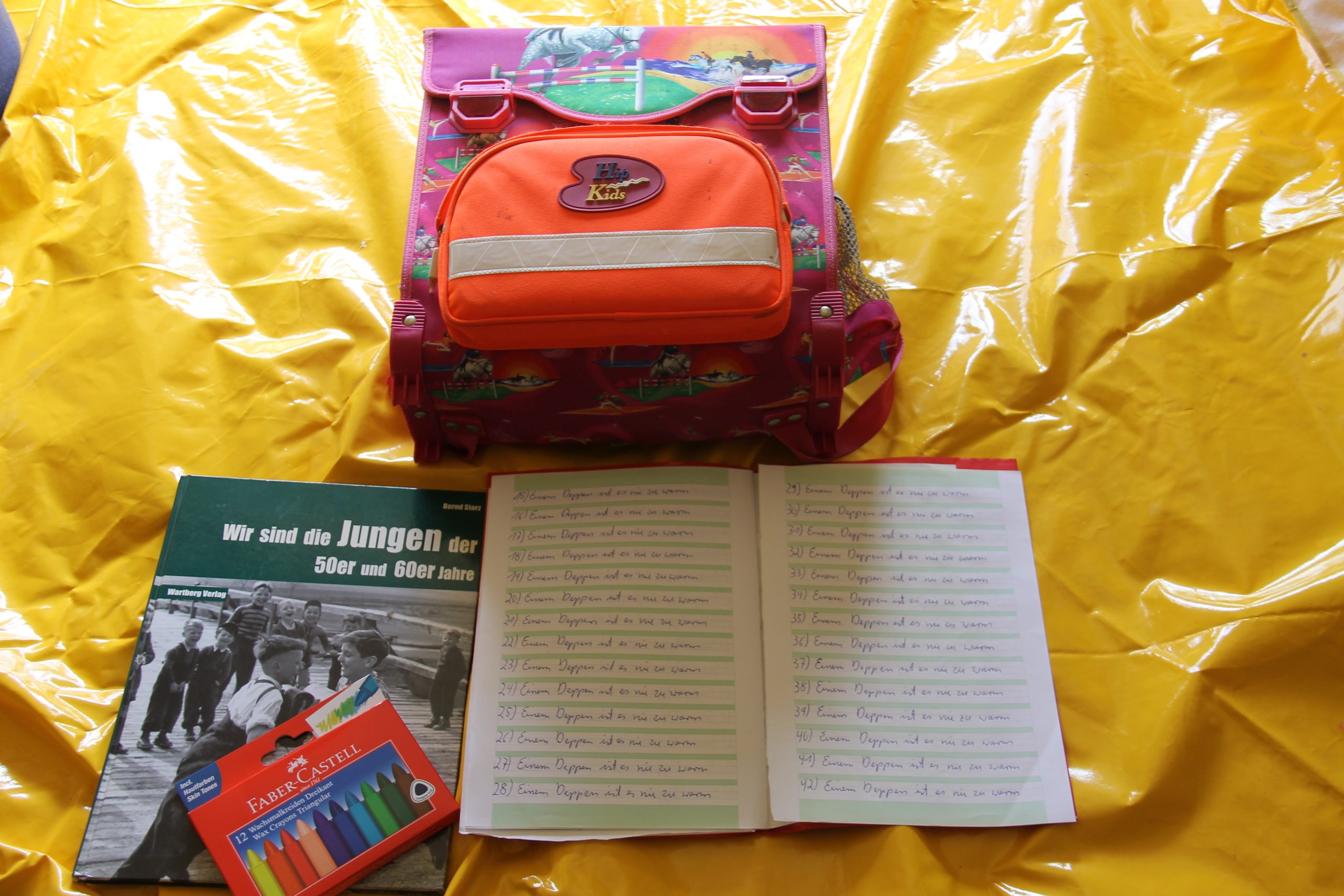 Natürlich gehört als wichtigstes Tool der Schulranzen (ST-001) dazu. Er ist Mädchen-Pink mit Reflektorstreifen und schon von weitem gut sichtbar. Ausserdem ist er ziemlich schwer, da er voll ist mit Schreibheften, Strafarbeiten-Heft, Hausaufgabenheft, Malbüchern, Lernbüchern, Malstiften, Federmappe, Brotdose und Trinkflasche.