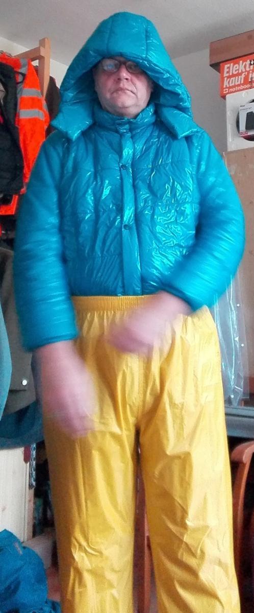 - gelber Nylon Regenanzug