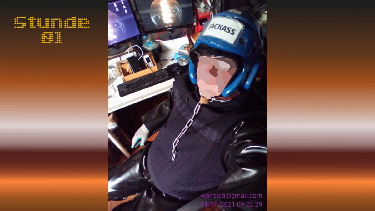 Abends sass ich wieder am Schreibtisch. Blick auf die Uhr: Noch vier Stunden! Oh jee, ich hatte überhaupt keine Lust mehr und hätte mir die Klamotten gerne sofort vom Leib gerissen. Ging aber nicht! Jetzt meldete sich auch Sir Marc wieder und meinte nur so rumsitzen wäre ja langweilig. Und so liess er mich die kommenden 2 Stunden immer wieder Kniebeugen machen, Hampelmänner tanzen, auf der Stelle joggen und in den Pausen mit dem Gesicht zur Wand knien.