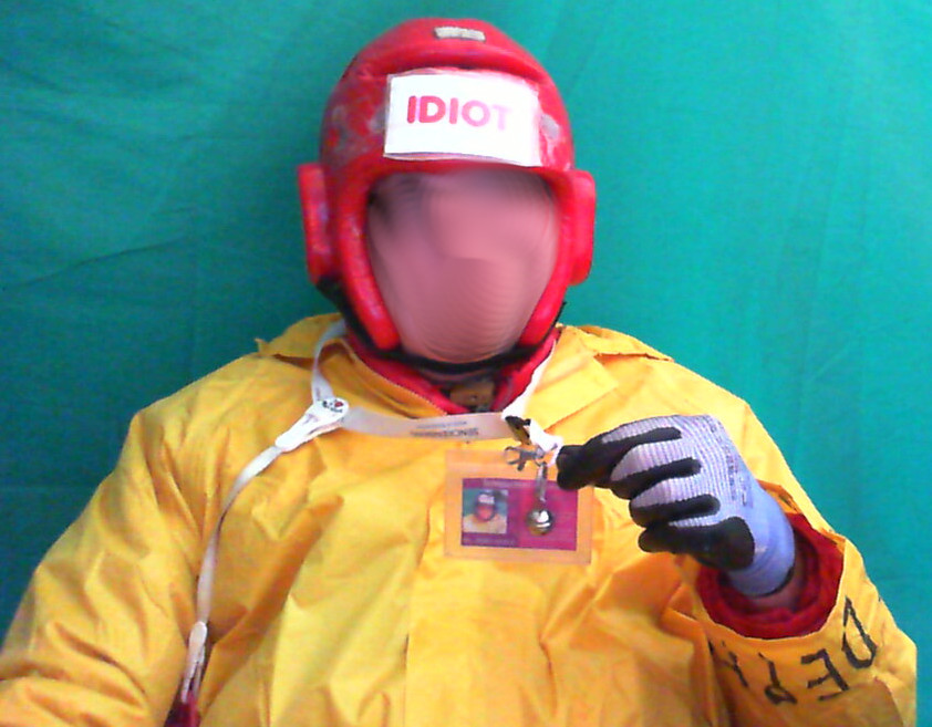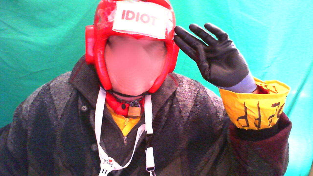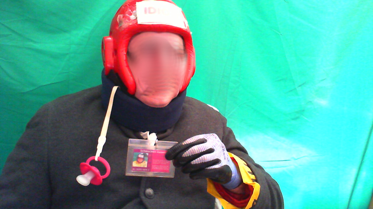 Zum Start musste ich E-CB, 2 Windeln, Windelhose, Glanznylon Skianzug, Regenhose, Watstiefel, Regenmantel, Helm und Gummihandschuhe anziehen. Davon machte ich ein Foto und veröffentlichte dieses auf verschiedenen online-Plattformen. Jede Reaktion (Like oder Kommentar) binnen 1 Stunde auf das Bild bedeuteten eine Aktion.